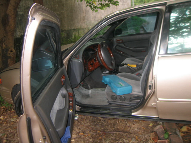 被撬开车门的轿车及作案工具