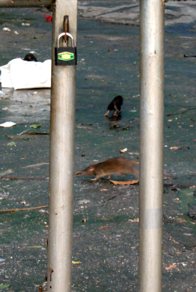 本网讯 6月9日傍晚,南校学生活动中心大楼旁边的垃圾场出现大量老鼠,老鼠数量多达二三十只,体积比玉米棒稍大。