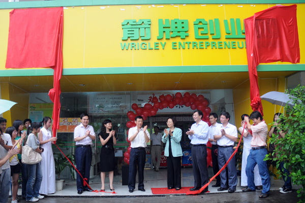 本网讯 6月9日下午,新落成的“云山箭牌创业园”在我校南校区举行揭牌仪式。校党委副书记陈建平、许国彬,箭牌糖果(中国)有限公司总监吴晓玲,高级传播经理谭静薇以及学生处、教务处、团委和就业指导中心的负责人等应邀出席。仪式由学生处处长植秀聪主持。