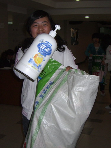 有了上一次回收废品的经验,这次同学们的动作异常迅速。他们一个个拿着袋子,三三两两地奔上各层宿舍,逐个敲开宿舍门开始回收废品。微笑是他们的招牌,真诚是他们的品质,务实是他们的作风。而更令人兴奋的是,宿舍里的同学们非常积极地配合,一听到是晨曦爱心社来回收废品,便不由分说,立即拿出了早已整理好的废纸、瓶瓶罐罐、旧报纸和杂志,有的还拿出了不再穿的衣服,还有的同学甚至还拿出了棉被。同学们的热情无疑激发了废品回收队同学们的积极性,使得他们以更加饱满的激情投入到回收废品的活动中去。