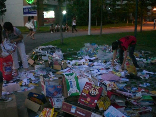 本次活动得到了广大同学的支持,一些宿舍早早整理好了物品等待志愿者的到来,工作人员更在回收的书籍中发现了不少有价值的图书。经过一个半小时的努力,各栋宿舍楼的回收工作基本完成。工作人员接着将所有物品堆放于3栋、6栋和10栋外的空地进行合理分类,并将物品当场卖出。晚上八点半左右,活动顺利结束。