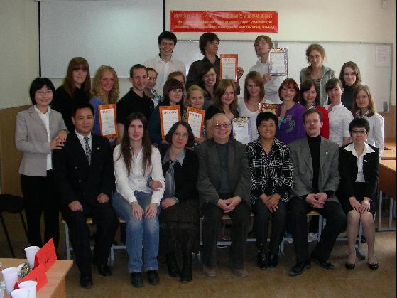 本网讯 5月23日,由我校和俄罗斯乌拉尔大学共同创办的孔子学院举行首届汉语日活动。来自乌拉尔大学、乌拉尔师范大学、乌拉尔矿业大学等多所乌拉尔地区著名高校和孔子学院、孔子课堂的五十多名学员参加了本次活动,中国驻俄罗斯叶卡捷琳堡总领事馆领事杨淑英女士亲临现场指导。乌拉尔大学东方学系主任、历史学教授库兹明先生,国际交流处处长玛利亚女士,汉语教师、孔子课堂对外汉语教师白文昌教授作为嘉宾出席了本次活动。