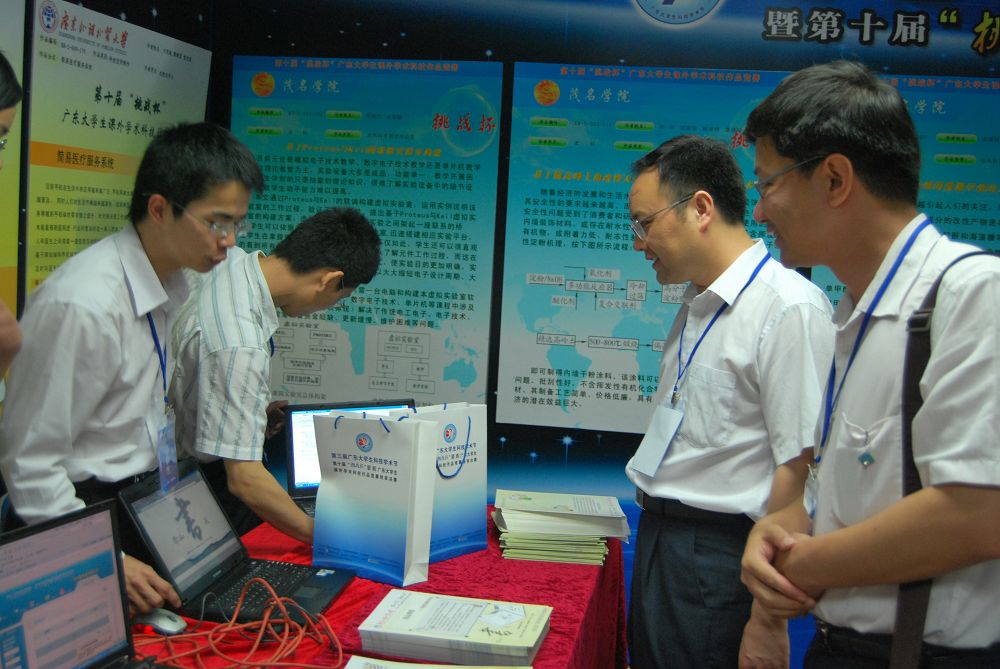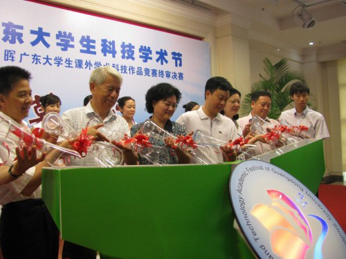 5月22日上午,第三届广东大学生科技学术节开幕式暨第十届“挑战杯”聚晖广东大学生课外学术科技作品竞赛终审决赛在南方医科大学枫林堂隆重举行。广东省副省长雷于蓝,团省委书记谭君铁,省教育厅、省科协党组、广东科学中心党委、“挑战杯”终审决赛评委、科技学术活动顾问、参赛高校领导及200多名参赛大学生代表出席了开幕式。我校副校长石佑启、校团委书记刘志军参加了开幕式并参观了展区。由校团委副书记谢秀兰等组成的观摩团也认真参观了其他高校的参赛作品。