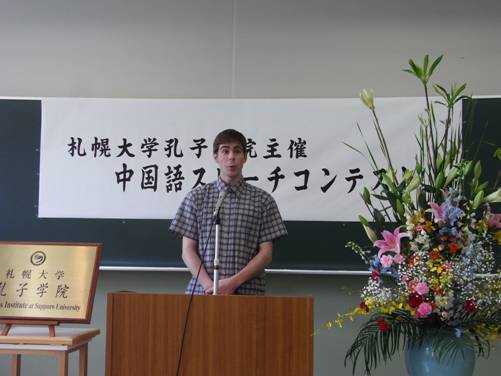 获得初级组一等奖的Jonath Malo是来自加拿大的留学生,在札幌大学学习了一年汉语,他讲述的是自己与打工时认识的一位中国导游之间发生的感人的故事;生驹纯获得了初级组二等奖,他小时候在中国武汉生活过,所以他讲的是毛泽东的故事,演讲最后还唱起了在中国家喻户晓的《东方红》。