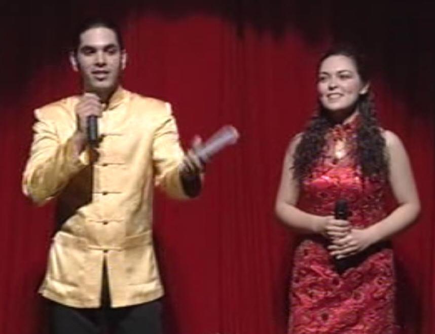 伊朗学生孟龙和乌克兰学生列娜主持歌唱大赛