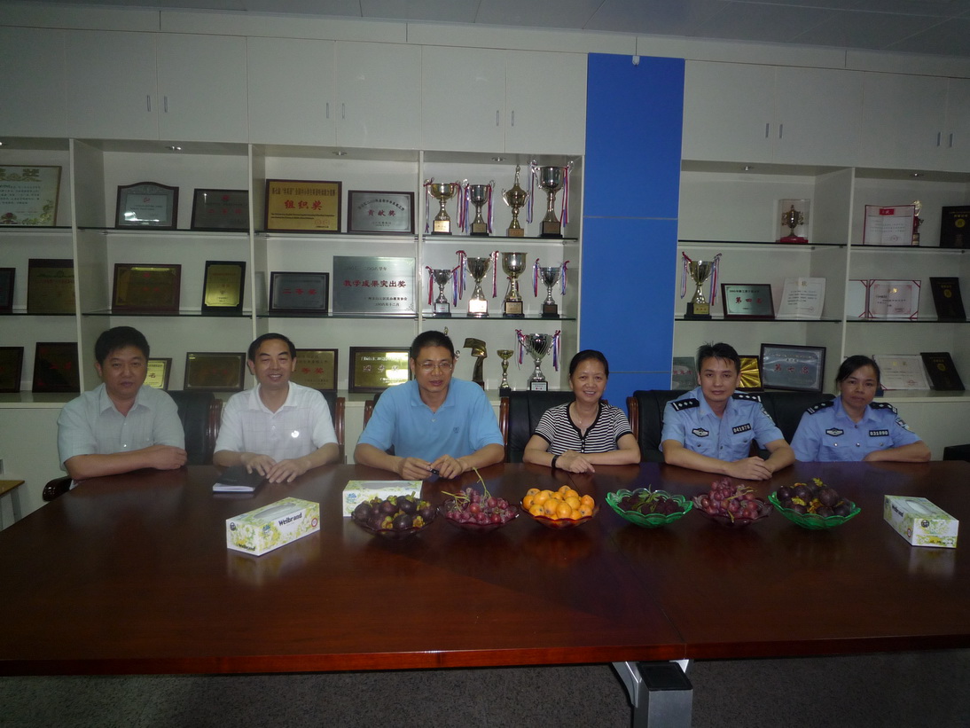 本网讯 5月20日下午,在保卫处处长钟罗军、副处长李忠德陪同下,黄石派出所教导员郭奋强率领驻校民警向艾军警官等人走访了广外附属学校,附校校长刘志明、副校长王承明等接待了来宾,双方就附校的师生安全、车辆交通等问题进行了热烈的讨论。