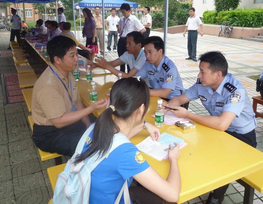 本网讯 近日,保卫处先后在南北校区举办了“校园安全保卫工作现场咨询会”活动,黄石派出所、小谷围派出所的驻校民警、我校保卫处、后勤处宿管部、大众物业、广房物业等多家部门共同参加了活动,取得了满意的效果。