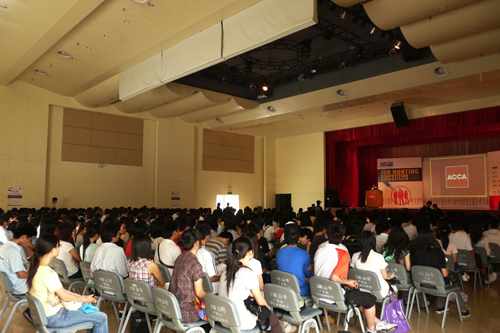 本网讯 5月21日下午, 2009年ACCA就业力大比拼广东赛区总决赛在我校南校区学生活动中心举行。包括我校段瑞芳、林浩滨、籍鹏飞和郑向溢在内的20名选手组成的4支队伍参与了角逐,最终第二小组以出色的表现摘得最佳团队奖,并当场得到普华永道会计师事务所的实习机会。