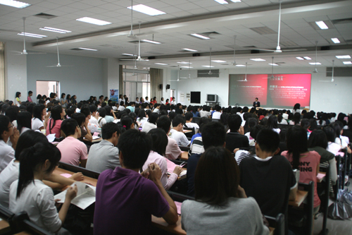 分享会上,同学们认真听讲,表现出极大的兴趣,现场气氛热烈。就职于中国长城工业的观建敏就国企就业提出自己的见解。她认为对于有意投身国企的同学来说,最重要是沉住锐气;低调做事,高调做人;寻找自己的空间。何明璐和黄捷文则谈到了信息行业今后的发展趋势。