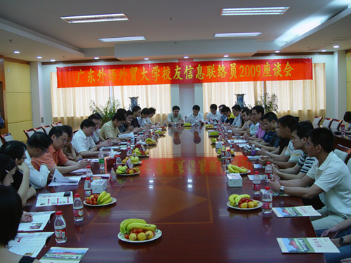 当天上午,老校友代表72级英语校友刘穗霞、81级国贸校友徐耀良和90级国贸校友严明应邀返校参加座谈,与近30位在广州、深圳、佛山、东莞等地工作的07、08届校友信息联络员共聚一堂,围绕如何更好地开展校友工作、加强校友联系等内容展开讨论。