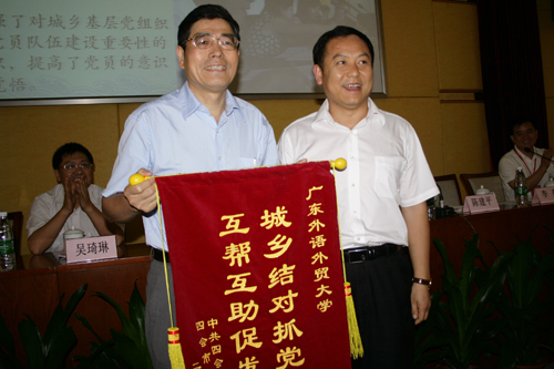 本网讯 5月21日下午,“城乡互助,共促发展”——城乡基层党组织互帮互助活动工作总结暨交流大会在我校南校区八角楼会议室召开。会议总结了在过去一年里,我校与肇庆四会市、端州区,以及惠东安墩镇108个基层党支部开展“一帮一”结对共建活动的情况,分享交流了在活动中取得的成果与经验,对今后的工作起了带头示范作用。