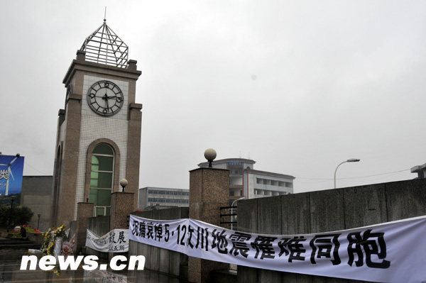 悲伤的大钟 时间永远定格在5月12日14:28(资料图片)