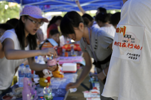 当天,募捐、义卖、义演、图片展览、签名收集系列活动活跃了整个广外校园。由中国扶贫基金会联合中国邮政总公司、电影频道(CCTV6)、新浪网等共同发起,广外自强社承办的“寄一份包裹,送一份关爱”“新长城5.12灾区学生六一关爱行动”通过募集善款,向灾区孩子送上特别的六一节礼物;由管院志协主办的义演义卖及图片展活动也得到了不少师生的积极响应,共为灾区人民筹得5032.2元善款。同学们用自己的行动向灾区人民表达自己深沉的爱以及对逝者无言的悼念。