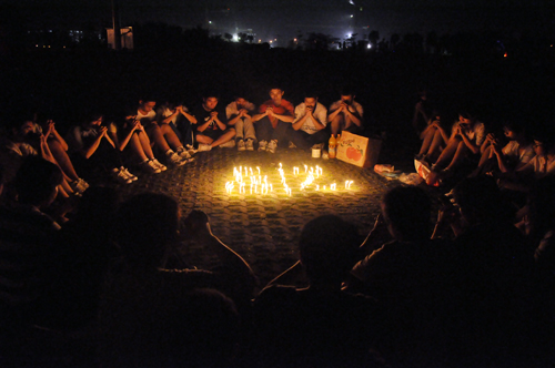 当晚,在大学城内不少地方都有点燃蜡烛和放飞孔明灯等特别的纪念活动。在广大,华工校园内以及中心湖畔,莹莹烛光长亮不息。悼念者们默默祈福,期盼着这点光亮能温暖汶川同胞们的心灵。