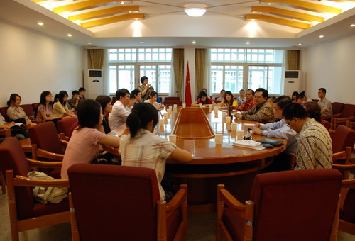 在双方互赠纪念品后,代表团来到第三会议室,与我校印尼语专业师生就印尼华人的经济成就和印尼华人在印尼的基本情况等问题进行了座谈与热烈的讨论。