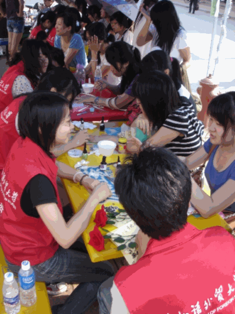 校道两旁俨然是玫瑰的海洋,女生人手一朵玫瑰,在享受到花的祝福时也被“爱心站”的一系列摊位的服务所吸引。在“爱心站”的摊位中,有打造女生新形象的“女生工坊”,也有华师义修队和广外信息学院义修队联合承办的为同学们进行单车义修和电脑义修的“回修站”。与此同时校学生会还与管院志协合作“Decorate life”,向女生传授一些生活小秘诀。在“四叶草清洁小屋”中,经贸勤俭则细心为同学们清洗键盘。“魔星高照”这个摊位上有广外魔术协会的高手们打造的神秘玄幻的魔术表演,“信使传情”这个摊位则是为同学们传递秘密礼物和美好感情的地方。另外还有广中医针灸推拿协为女生们带来的“义诊”活动。