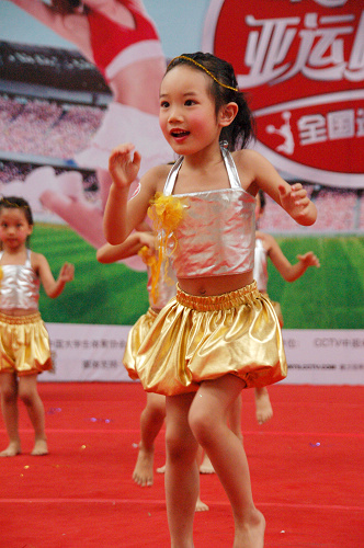 带来惊喜的还有来自广外幼儿园的小朋友们。她们穿着金色小裙子和银色小背心跑上场时,现场的观众们都吹起了口哨,为他们欢呼。当小主角黄琨绕场蹦跳跑动时,完全不加修饰的天性表露征服了现场所有的观众。