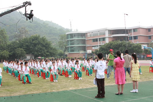 5月12日下午,我校附属中小学与广东电视台英语辅导频道在广外附校大操场合作拍摄了 “英语激情广场——百里挑一” 节目,附校五年级学生参与了节目的录制。