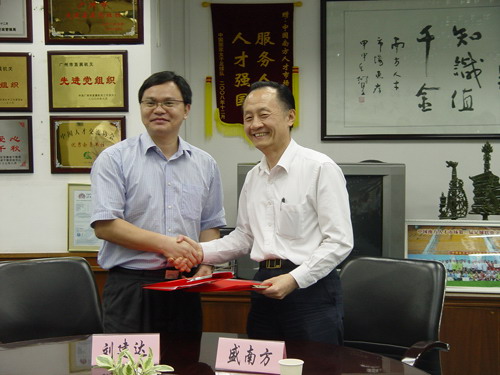 会上,盛南方首先发表讲话。他说,广外大是首间与南方人才市场签约实习基地的高校。南方人才市场能尽这样一份社会责任,是南方人才市场的荣耀,他十分感谢广外大领导对这次签约的重视。同时,他简述了南方人才市场的概况和成果。他认为,此次协议的签订是一次双赢。一方面,南方人才市场为我校大学生提供了一个社会实践的平台;另一方面,我校为南方人才市场提供专业的学术指导。他做了一个精彩的比喻:“可以这样说,广外大是生产商,南方人才市场是销售商,社会是消费者,我们这次合作,相信一定会为社会做出应有的贡献。”