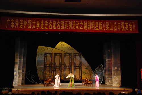 本网讯 五十多年前,越剧电影《梁山伯与祝英台》在全国上映并引起轰动,打破了当时电影放映的历史纪录。五十年后的今天,越剧明星版《梁山伯与祝英台》在广外的上演再次引起了轰动,观众好评如潮。