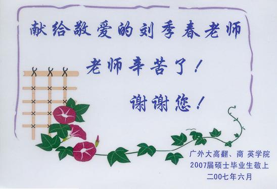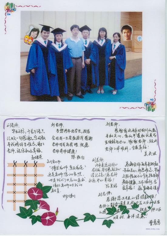 “看到学生喜欢上我的课,这是我最有成就感的时候”,他用朴实无华的语言表达着自己对教师工作的热爱。刘季春最乐意花时间在教学工作上。学生们对他的真诚和负责也给予了最真切的回报。多年来,他总是能收到学生们亲手绘制的特别贺卡,这些卡片不只是简单地写上礼节性的祝福,而是一张卡片上满满地承载了几十位同学不同字体、独具风格的心声。有时候一张卡片容不下那么多字的祝福,学生们还会另用纸附上。“作为一名教师,还有什么比这更让人开心的呢!每当我收到这样的卡片,我都不禁热泪盈眶,也让我更加喜欢教育事业。这些以班集体名义送给我的卡片,我至今都珍藏着,因为对我而言,最大的幸福莫过于得到学生的认可!”