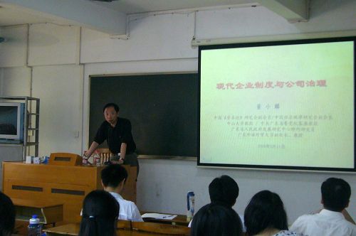 董小麟围绕着企业与企业制度以及现代公司制度两大主题展开深刻讲解,从企业的定义和特征、三种基本的企业制度以及它们各自的优缺点、现代公司制度、现代公司的结构、股东大会的表决制度、董事会的模式以及监事会等方面进行详细阐述,向在座的师生展示了一幅幅清晰的企业结构与模式图示。