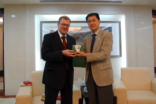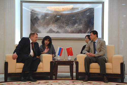 隋广军还谈到在广外已增设俄语博士点的问题,他认为这有利于我国华南地区高层次人才的培养,并请俄方给予大力支持。同时,他对代表团的来访与为促进两校文化交流作出的努力再次表示感谢,并期待着5月份率团出席在莫斯科召开的上海合作组织成员国第二届教育周“教育无国界”会议。最后隋广军向客人表示,相信两校的合作关系能够在双方的努力下进一步拓宽合作渠道,为中俄两国的教育、科研、文化交流等方面做出应有的贡献。随后,双方互赠了纪念品并合影留念。