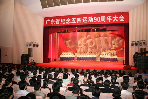 上午10:30,广东省纪念五四运动90周年大会正式拉开序幕。会上,汪洋、黄华华等省领导向第十一届“广东青年五四奖章”获得者、“广东省十佳团县委书记”和“广东省五四红旗团委标兵”等一批先进集体和个人代表颁奖,第十一届“广东青年五四奖章”获得者李泽中等3名青年代表作了发言。