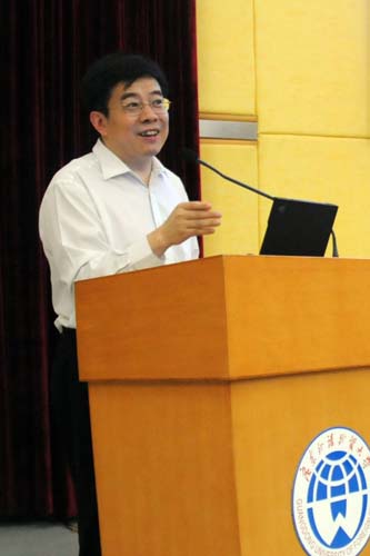 本网讯 4月22日晚,应国际经贸研究中心邀请,对外经济贸易大学中国WTO研究院院长张汉林在南校区八角楼会议室展开题为“金融危机背景下中国经济贸易发展”的讲座。国际经贸研究中心主任陈万灵,经贸学院副院长易行健,振戎能源有限公司董事长、广东外语外贸大学校友会经贸学院分会副会长熊韶辉出席了讲座,到场的还有部分银行及企业职员和经贸学院师生。讲座由陈万灵主持。