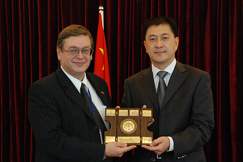 会议伊始,隋广军对科托夫一行的到访表示热烈欢迎,并简要介绍了我校的基本情况。他提到,作为外向型大学,我校外语类学科在全国范围内始终保持着的优势,而近年来我校的经济、管理、法律、艺术等学科也得到了迅速的发展。我校的俄语教学在国内也拥有一定的地位,2010年我校研究生招生将新增俄语语言文学博士点。同时,隋广军也特别指出,我校采取的是国际化战略。俄罗斯是重要的合作伙伴,他希望科托夫能给予我校更多的关注与支持,以推动我校俄语学科的进一步发展,促进我校与俄罗斯在经济、文化等方面的合作与交流。