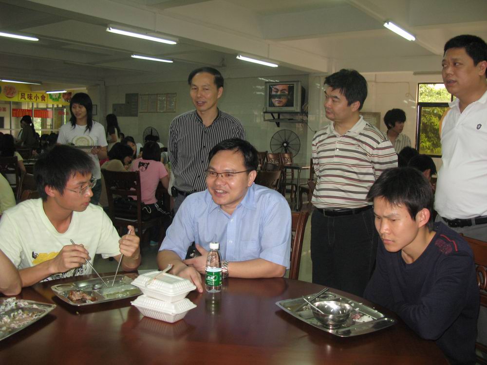 刘建达还与就餐的学生进行交谈,关切地询问学生平时的学习和生活情况。同学们畅所欲言,介绍了自己的生活和学习情况。最后,刘建达还叮嘱同学们,在春夏之交要特别注意餐饮等方面的日常安全卫生,注意身体健康。