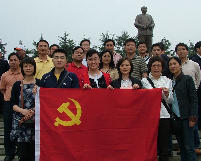 党员们在毛主席铜像前合影