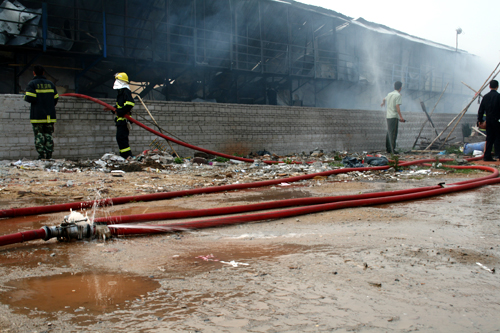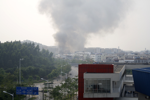 本网讯 4月14日下午4时许,消防车的尖啸声三次划过广外生活区,位于贝岗村西面靠近中大生活区的天马城建筑工地上冒起了滚滚黑烟。火灾发生后,消防人员、警卫人员以及医护人员先后紧急赶到现场进行营救。据了解,此次火灾共烧毁工人宿舍两层共22间房,建筑面积初步统计约有七、八百平方米,大部分民工财物受损。所幸的是,火灾中无人员伤亡,由于灭火及时,周围房屋并未受到牵连。