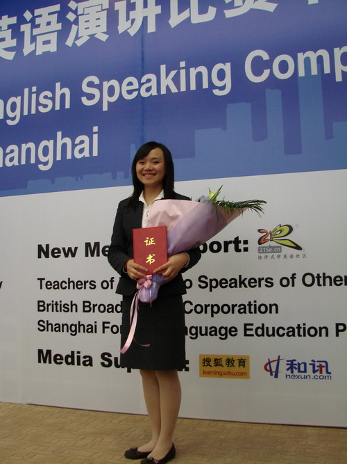 本网讯 4月8日,我校女生曹素于上海参加第十四届“21世纪·联想杯”全国英语演讲比赛半决赛,最后取得全国三等奖的好成绩。据悉,08年11月16日,曹素经过海选进入了第十四届“21世纪·联想杯”全国英语演讲比赛南部赛区前十名,并代表我校出战09年4月在上海举行的半决赛,获得第三名的好成绩。