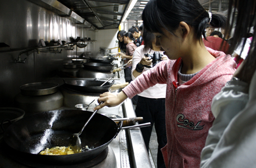 女“大厨”掌勺一显身手(记者\\李文舜)