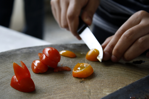记者在现场发现,掌勺的“大厨”基本都是女生,多数男生只是负责切菜,摆盘的工作。一位“大厨”表示:“他们可是我的‘助理厨师’。”
