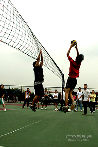 本网讯 6月5日,08年广外“新生杯”排球赛半决赛在南校区排球场燃起战火,由国际学院对阵法学院。比赛进行得惊心动魄,国际学院在大比分2:0领先的情况下,被法学院连扳两城,最终经过5局的激烈争夺,国际学院才以26:24、25:21、22:25、20:25、15:11,总比分3:2惊险胜出,挺进决赛。