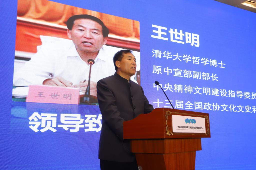 王世明从中华传统文化经典《易经》入手指出,中国共产党的“初心”源于“自强不息、厚德载物”的“中华初心”。他强调坚守“中华初心”、传播“中华初心”的重要性,在粤港澳大湾区国际艺术教育中要讲好中国故事,传播中国声音。