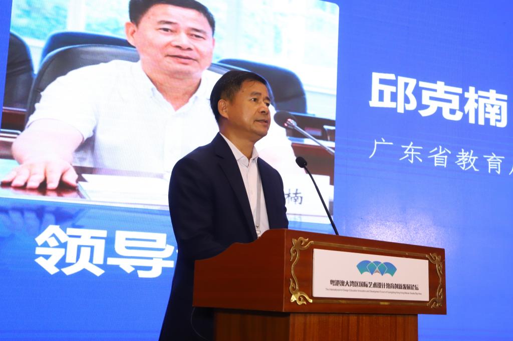 邱克楠代表省教育厅对论坛成功举办表示祝贺。他表示,广东作为中国改革开放的前沿地区,历来重视艺术设计教育工作,广东省教育厅今年9月份印发了广东省加强学校体育、美育劳动教育行动计划,将学校美育工作纳入全省推进教育现代化工作范畴,纳入各级政府履行教育职责评价指标,纳入政府履行教育职责工作考核,与教育现代化督导验收挂钩。本次论坛在粤港澳大湾区发展规划战略背景下探讨国际艺术设计教育创新发展,抓住了当前的热点问题,不仅对广东外语外贸大学艺术学院,而且对大湾区内高校的艺术学院都有一定的指导意义。他希望与会专家能够畅所欲言,为大湾区国际艺术教育建言献策,希望省内高校多举办类似的高层次论坛活动,积极推动大湾区国际艺术设计教育创新发展。