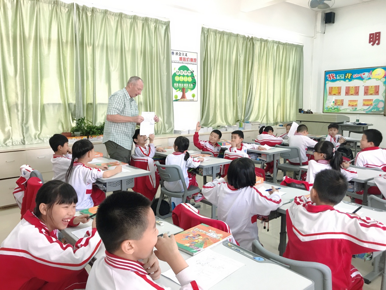 在外教义教活动中,来自英国、美国、捷克、韩国的5位外教詹姆斯·坎皮恩(James Campion)、艾伦·格里(Alan Geere)、罗伯特·庭道尔(Robert Tindol)、李强迪(Vit Zednik)、石楿(Seok Hyang)老师分别走进中小学课堂,为小学生和中学生开展了一堂别开生面、活泼有趣的外教课。几位外教在义教前都做了细致且充分的准备,其中来自韩国的石楿老师表示非常期待能给高中生上课,来自英国的外教James坦言自己是第一次教一年级的小朋友,感到十分激动紧张。课上,几位老师都用生动的案例、多样的教学方法为孩子们带来了精彩纷呈的课程,深受学生的欢迎和喜爱。