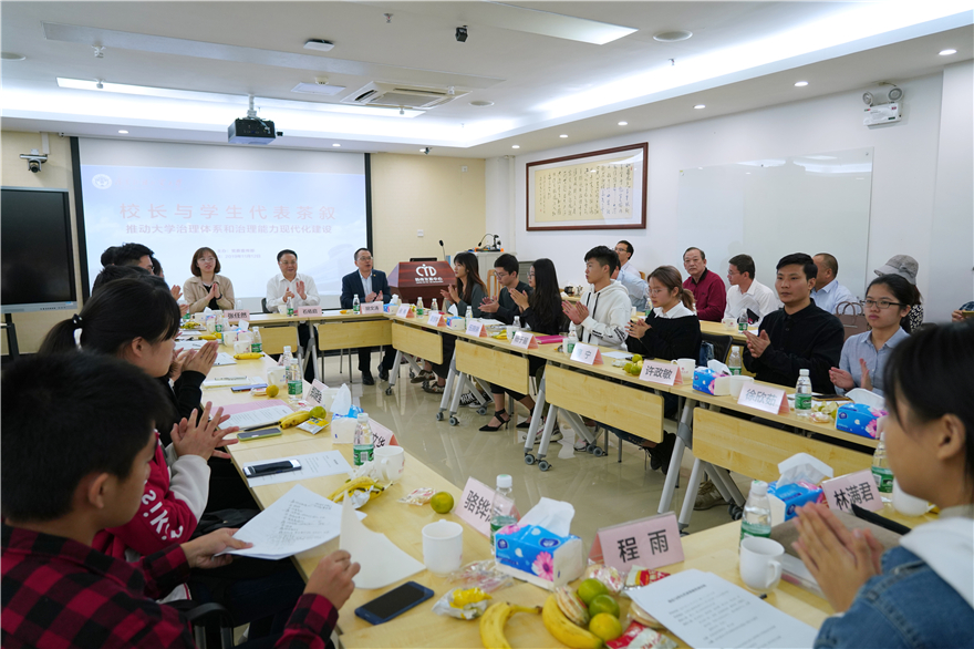 本网讯 11月12日,校长与学生代表茶叙活动在教师发展中心105会议室举行。我校校长石佑启与来自南北校区各学院的20名本科生、硕士生、博士生代表围绕“推动大学治理体系和治理能力现代化建设”的主题,聚焦学校教学、科研、管理、服务等多层面多领域进行交流。