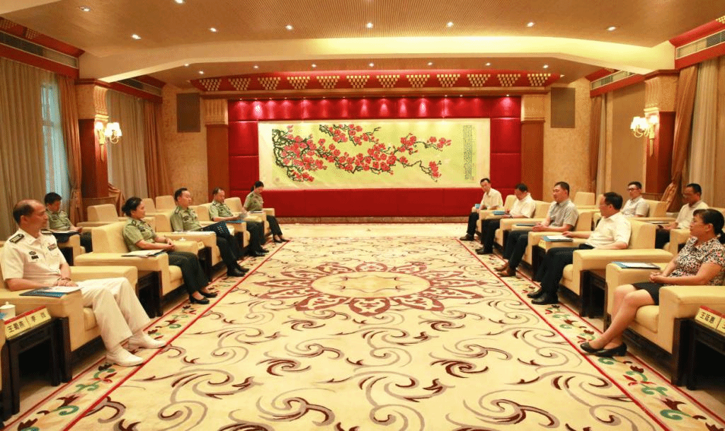 本网讯 9月9日下午,值第35个教师节来临之际,南部战区总医院院长周学君、政治委员邹瑜桥、副院长李岿、政治工作部主任李东杰、卫勤部副部长王蜀燕、对外医疗联络部主任陈苒、院办主任朱林波等一行来校座谈,并送上教师节祝福。我校党委书记隋广军,校长石佑启,副校长刘建达、王廷惠,党办校办主任金良成,后勤处处长王斌等参加座谈活动。