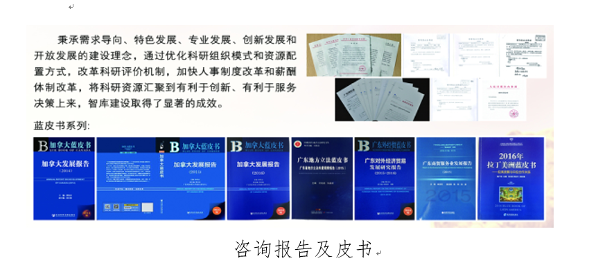 二是搭建多层次国际合作交流平台,增强国际学术影响力。承办“广东开放论坛”“中国(广东)—东盟战略合作论坛”“广东低碳发展国际论坛”“中韩投资环境研讨会”“城市‘观察’圆桌会议”等高层学术论坛,各类高层次学术论坛成为政府重要决策咨询平台。