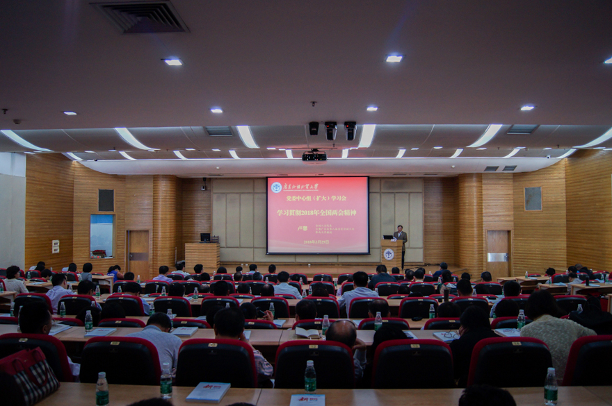 本网讯 3月29日下午,党委中心组(扩大)学习会在我校北校区图书馆负一层报告厅召开。为全面深入学习2018年全国两会精神,引导广大党员干部深刻领会、准确把握两会精神实质,会议邀请了全国人大代表、台盟广东省第八届委员会副主委、暨南大学教授卢馨作专题报告。校领导,校党委委员,校纪委委员,正、副处职级干部出席本次会议。会议由我校党委副书记李云明主持。