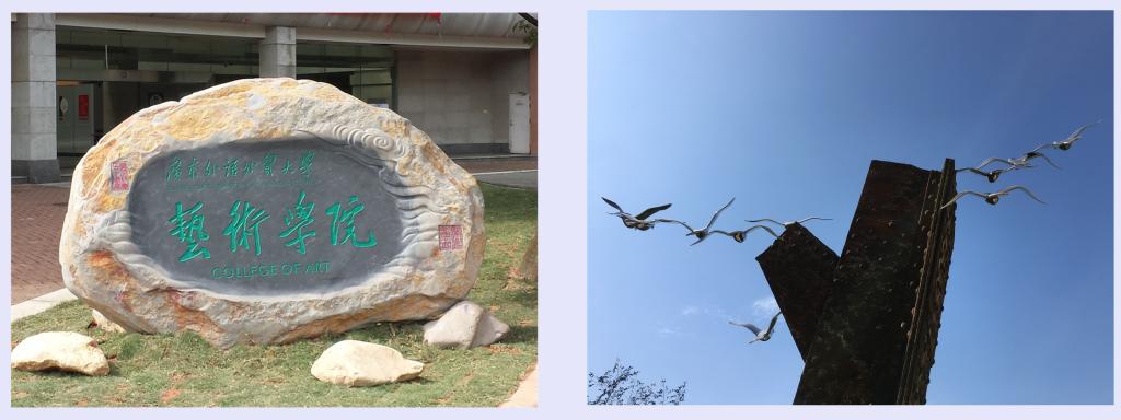 2015年,恰逢建院10周年之际,艺术学院专门设计了两个户外景观作品,一个是以肇庆端砚石材雕凿的学院院碑,一个是取自法国埃菲尔铁桥拆卸下来的钢结构造型嵌以10只飞翔的和平鸽的雕塑,前者寓意艺术的本土化,后者象征艺术的国际化,两件户外景观明示了学院坚持立足本土,放眼国际的办学理念。