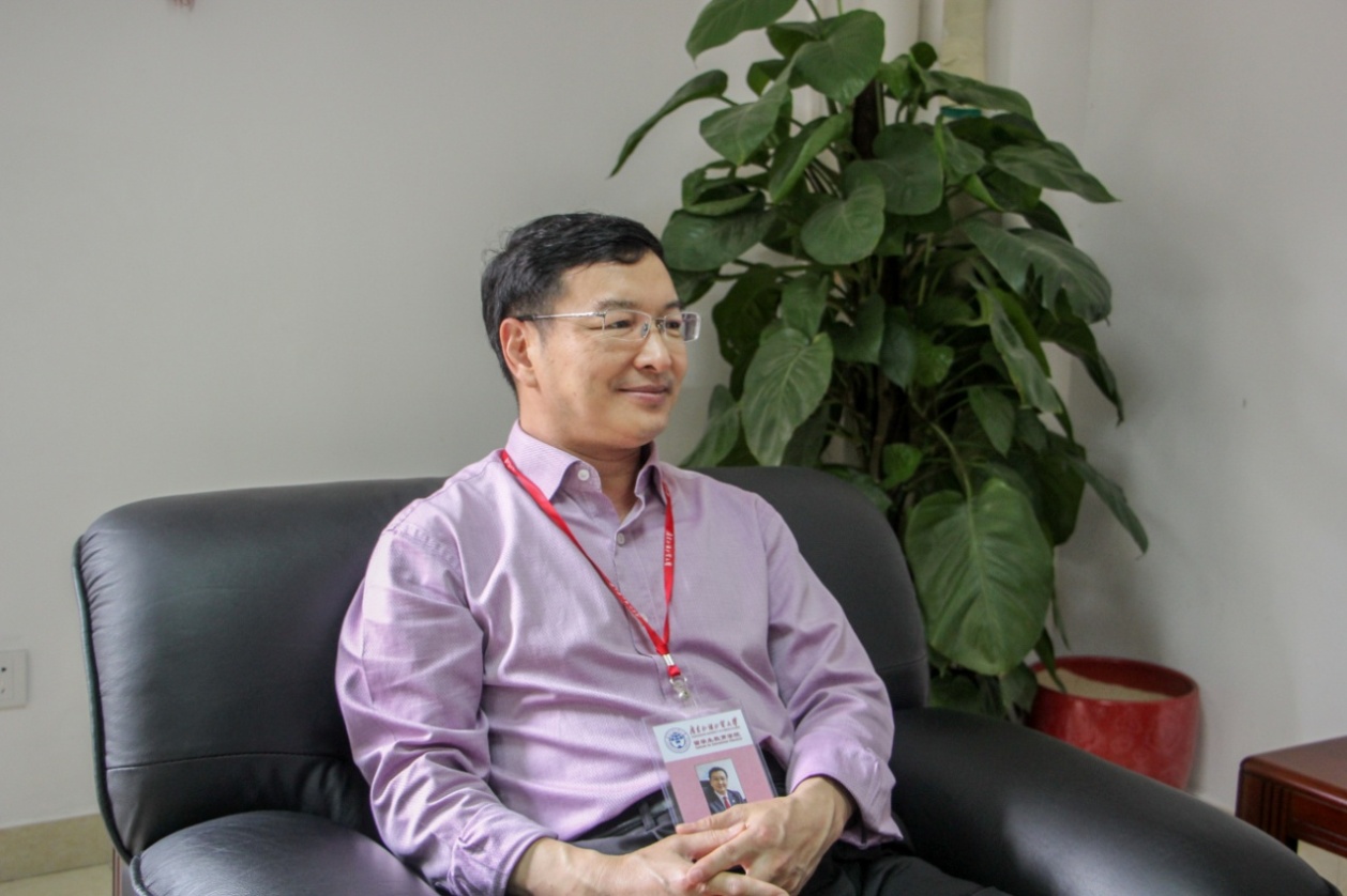 留学生教育学院院长梁学宏接受新闻社记者采访