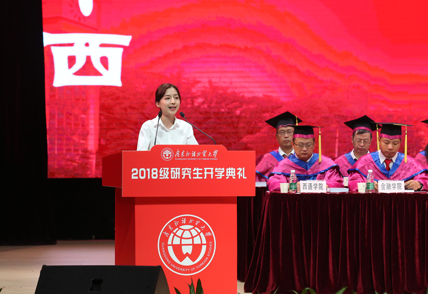 商学院2017级企业管理专业卢晓婉作为老生代表在发言中提到,在研究生阶段,要让心归零,重新起航;要专于学术,也应注重实践;要调节情绪,学会解压;要以卓越为目标,在实践中不断调整。2018级博士生代表、外国语言学及应用语言学研究中心程功发言认为,作为学生,要立德成才,修身养性,在学术研究方面坚持求真务实的原则;同时应该明确目标,认真规划自己的人生。来自会计学院的2018级硕士生代表刘倩麟与在场师生分享了自己在贵州支教的经历。她认为,这段经历弥足珍贵,给她带来了信心,让她可以不断地去迎接生活中的每一个挑战,并与大家分享自己的几点心得:面对困难,需保持不畏艰难的心态;作为一名学生,要敢于创新;而作为社会的一份子,要敢于奉献。