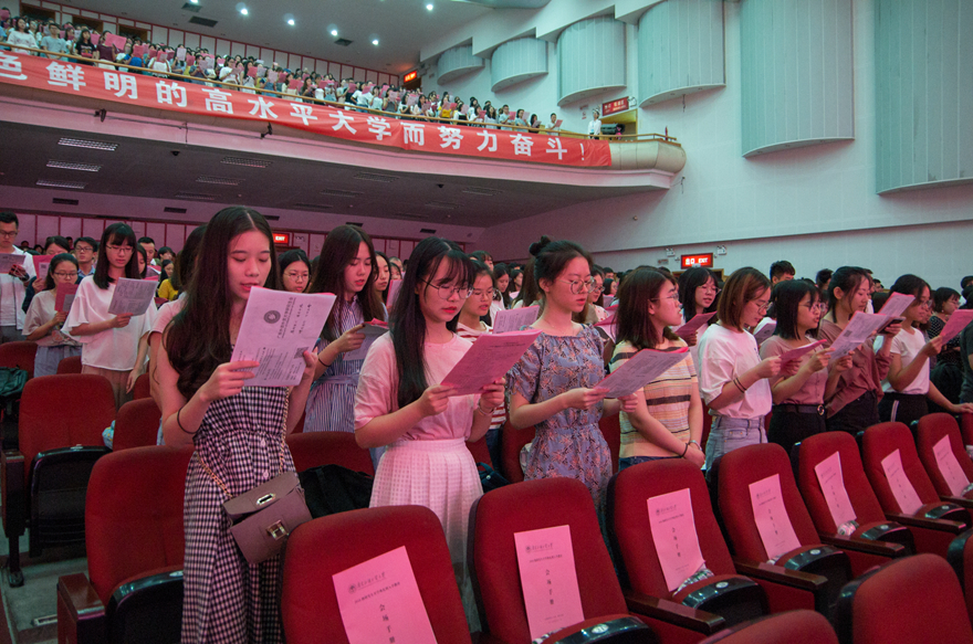 随后,全体研究新生进行了庄严的宣誓,典礼在校歌的奏唱中落下帷幕。