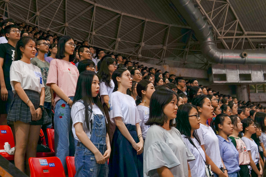 随后,校领导为新生代表佩戴校徽,全体新生进行了庄严宣誓。