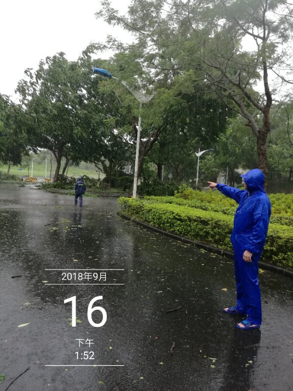 校党委常委、副校长刘海春召集学生工作部(处)、后勤处负责人,迅速行动,提前部署,突出重点、认真检查、严阵以待,坚持生命至上的原则,切实做好台风“山竹”各项应对和处置工作,确保学生人身财产安全。各单位启动应急响应机制,连夜开展工作,通过各种渠道,第一时间发布停课停学通知及防范措施,通知到师生。
